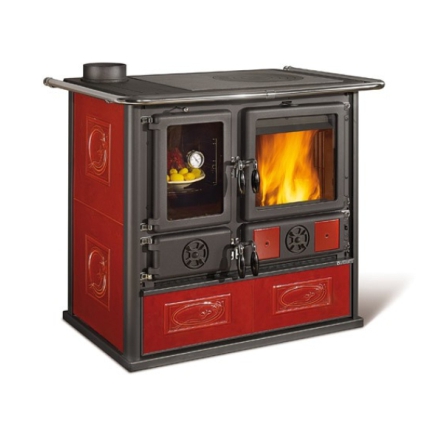 Celoliatinový šporák Rosa s funkciou dvojitého spaľovania a kachľovým obkladom, vyniká priestranným ohniskom z liatiny, pohyblivým roštom a veľkou rúrou na pečenie s teplomerom. Liatinová platňa má v mieste nad ohniskom odnímateľné kruhy, umožňujúce varenie na otvorenom ohni. Tak môže dilatovať, nedeformuje sa a ani nepraská. Vďaka preskleným dvierkam, si môžete dopriať krásny pohľad na horiaci oheň a kontrolovať priebeh pečenia v rúre.